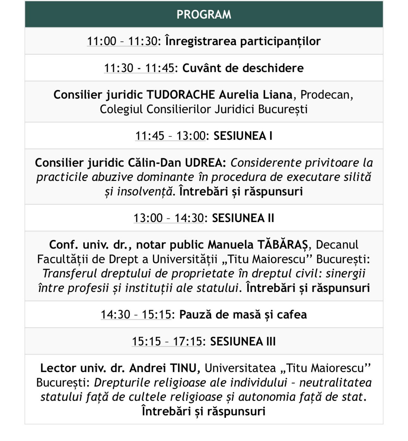 11.30 Cuvânt de deschidere Colegiul Consilierilor Juridici București.