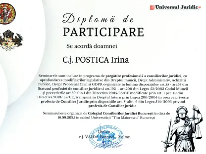 Seminarul pentru consilieri juridici din data de 18.09.2025 se va desfășura în intervalul orar: